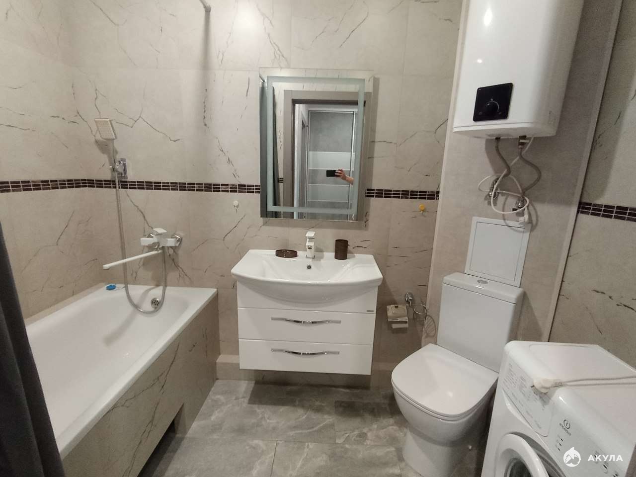 Все необходимое для комфортного проживания уже есть в квартире: бытовая техника, сантехника и мебель. В комнате установлена двуспальная кровать. Ванная комната совмещенная.