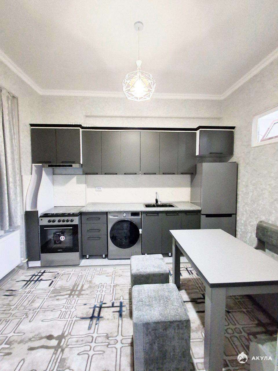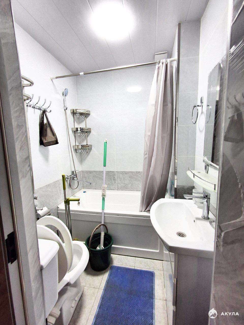 Все необходимое для комфортного проживания уже есть в квартире: бытовая техника, сантехника и мебель. В комнате установлена двуспальная кровать. Ванная комната совмещенная.