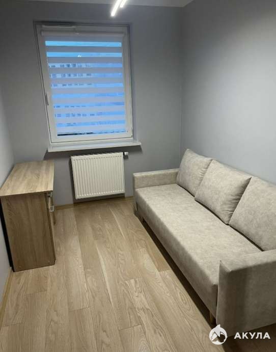 Вторая комната оформлена как кабинет и дополнительное место отдыха - здесь находится компактный диван, шкаф и рабочий стол. Пространство можно использовать как гостевую или рабочую область.