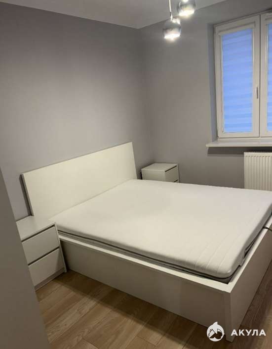 В первой спальне установлена кровать, вместительный шкаф и тумбочки.