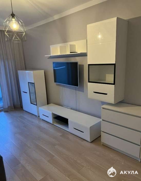 Основное помещение объединяет кухню и гостиную. Кухонная часть оснащена всем необходимым для комфортного приготовления: варочная поверхность, духовка, холодильник и мойка с хромированным смесителем. Подсветка добавляет уюта и удобства в вечернее время.