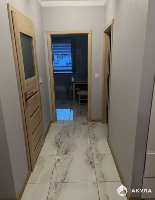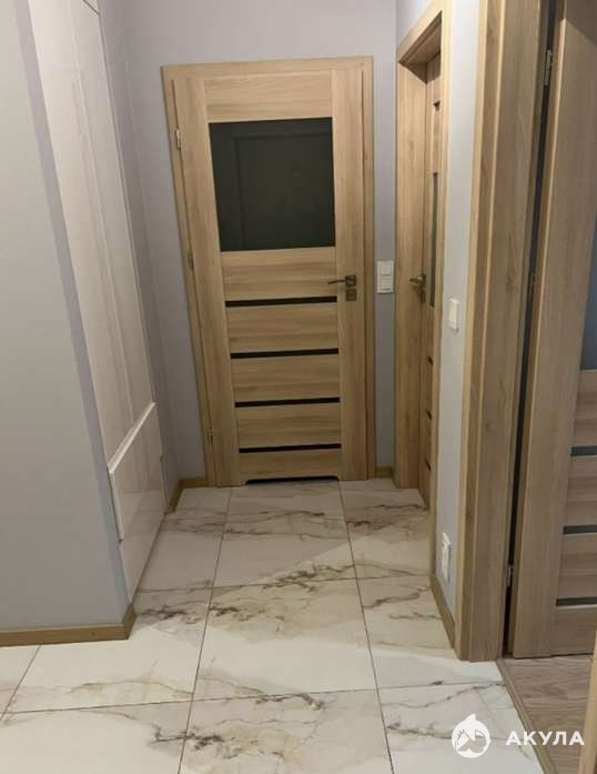 В прихожей - встроенный шкаф-купе от пола до потолка, где удобно хранить верхнюю одежду и повседневные вещи. Светлое оформление и аккуратные двери с матовыми вставками создают ощущение простора уже с порога.