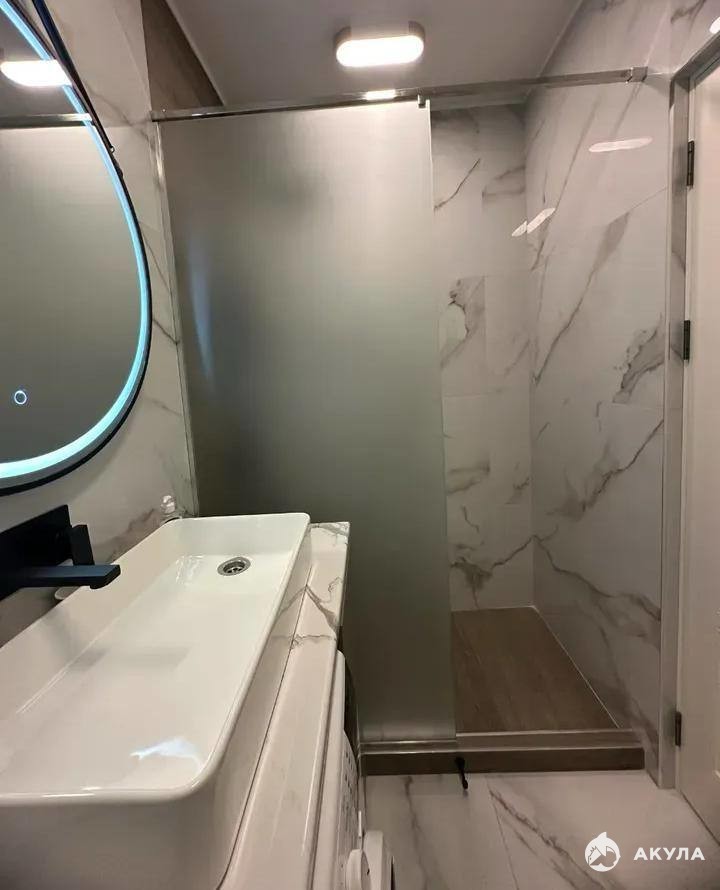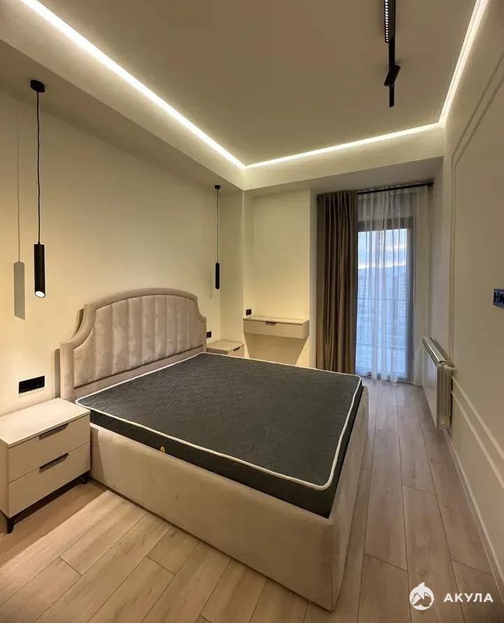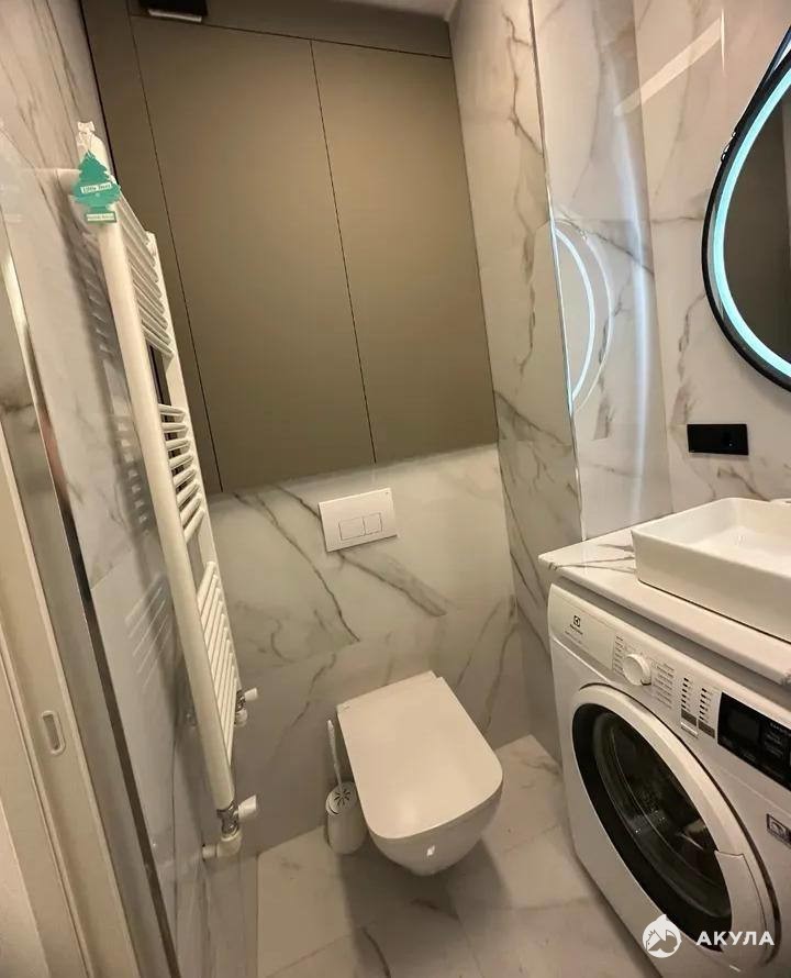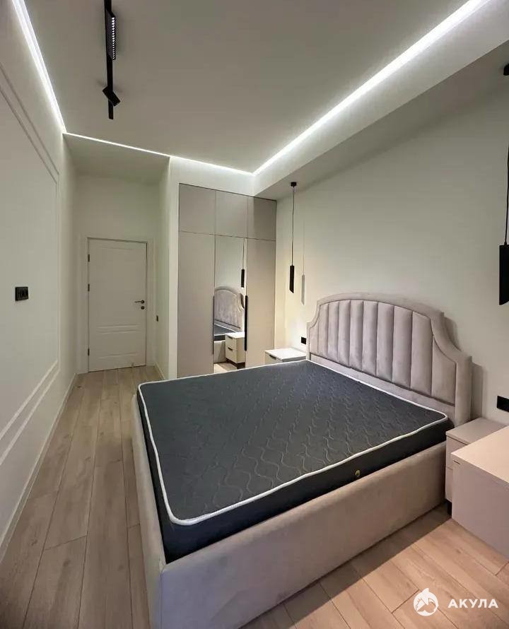 Все необходимое для комфортного проживания уже есть в квартире: бытовая техника, сантехника и мебель. В комнате установлена двуспальная кровать. Ванная комната совмещенная.