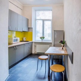 Квартира чистая, с хорошим ремонтом. Площадь расходована с максимальной эффективностью. Все для того чтобы вы могли быстро заселиться. Гостиная: Много посадочных мест, обеденный стол, 2 кресла, стулья с мягкими сиденьями, диван, тумбочка, широкие окна. Напротив комод с...