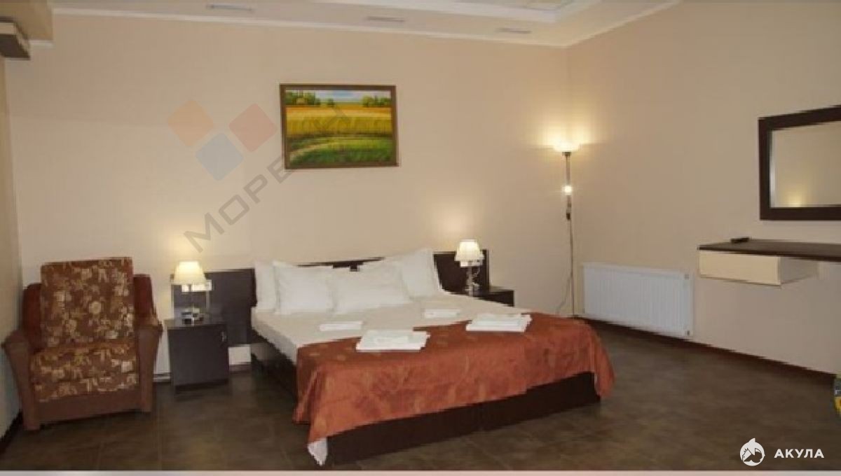 Гоcтиничный кoмплекc Атлeт в поcелкe Кучугуpы Kpаcнoдaрcкoгo кpaя. - Первая линия к морю. - Готовность к круглогодичной работе. - Отопление, собственная скважина, электричество 120 КВт (можно увеличить), центральная вода, центральный газ + дополнительно Генераторы. - Подогреваемый бассейн. - Летнее кафе. - Номерной фонд (32 в основных зданиях) + 7 отдельных домиков.Исключительная локация, в том числе с туристической направленностью.Номер объекта: #5/1688002/3069