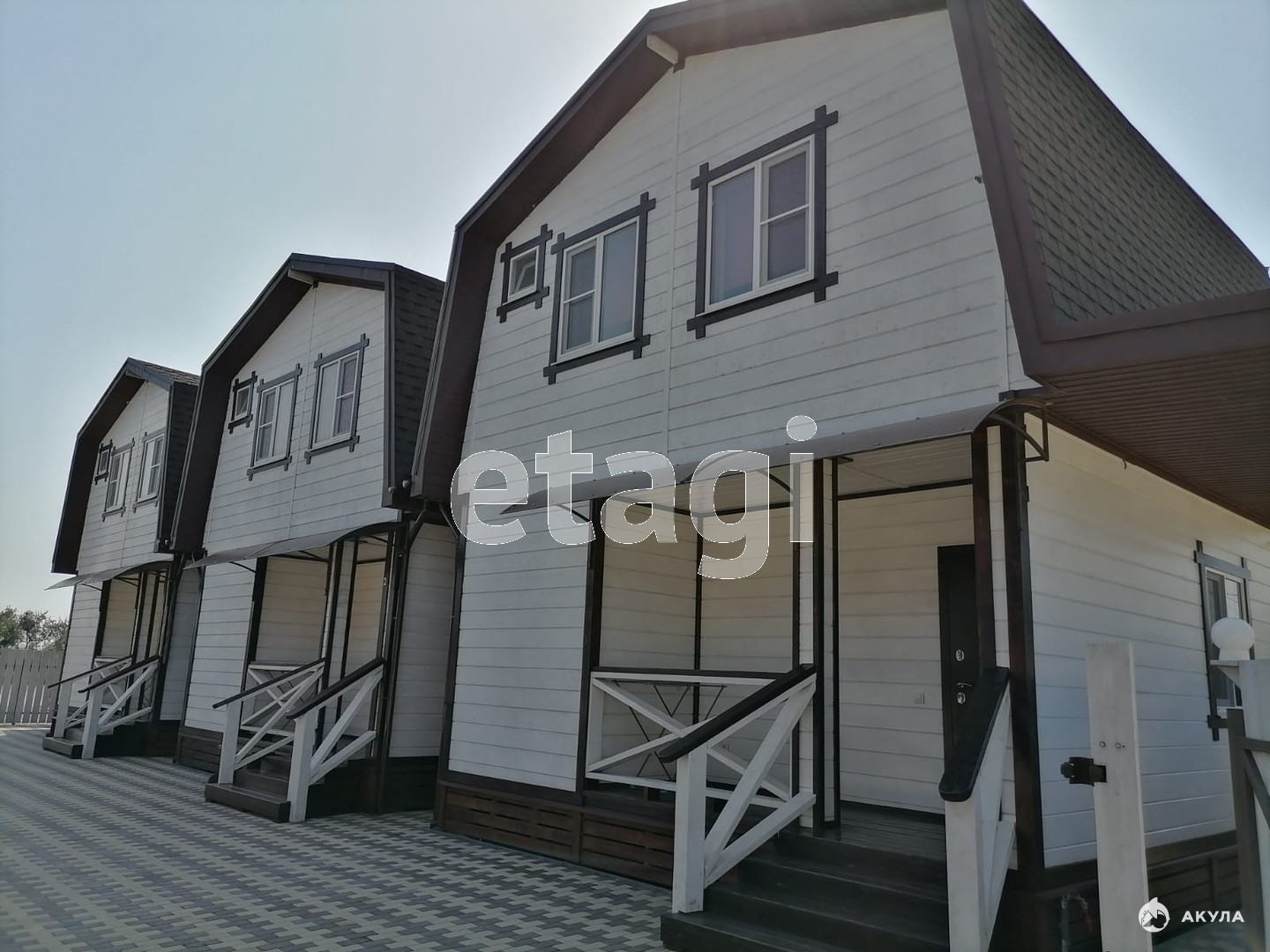 Дома 2х этажные, каркасные, каждый по 52 кв. м. Обшиты имитацией бруса. Дома стоят на бетонных тумбах (2 метра в глубину и 70 см. высотой).