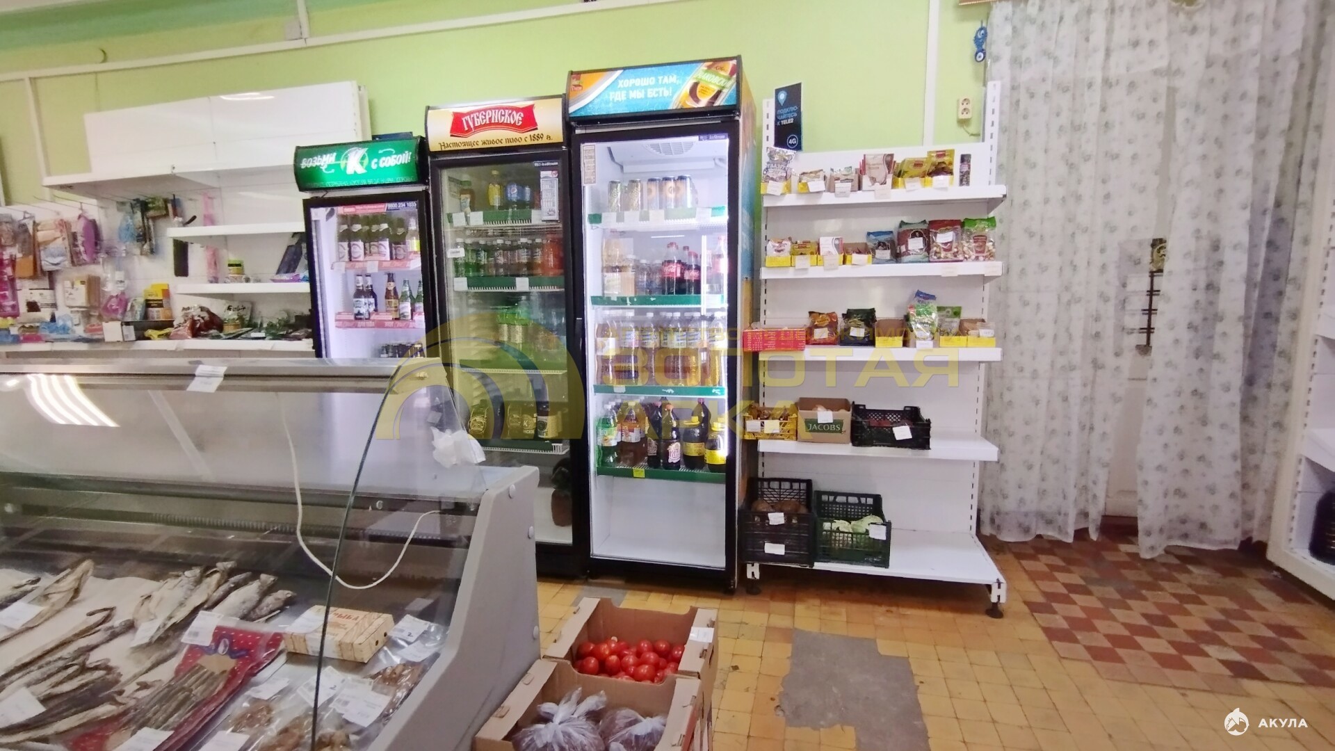 Оборудование: Магазин продаётся со всем необходимым оборудованием, включая холодильники и стеллажи.