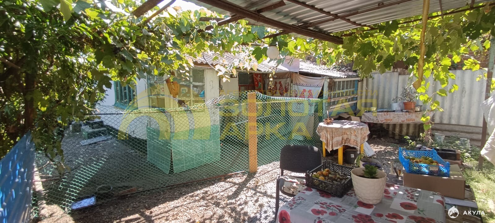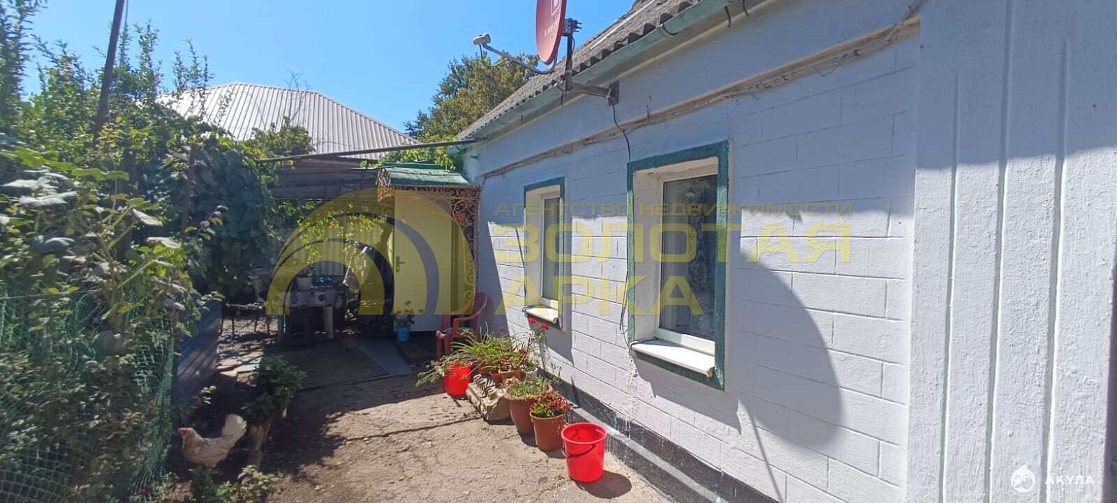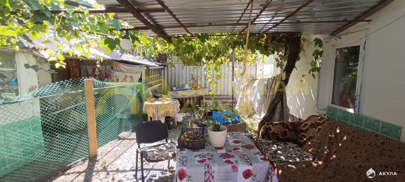 На улице беседка, туалет, душ, хозпостройки, летняя кухня.