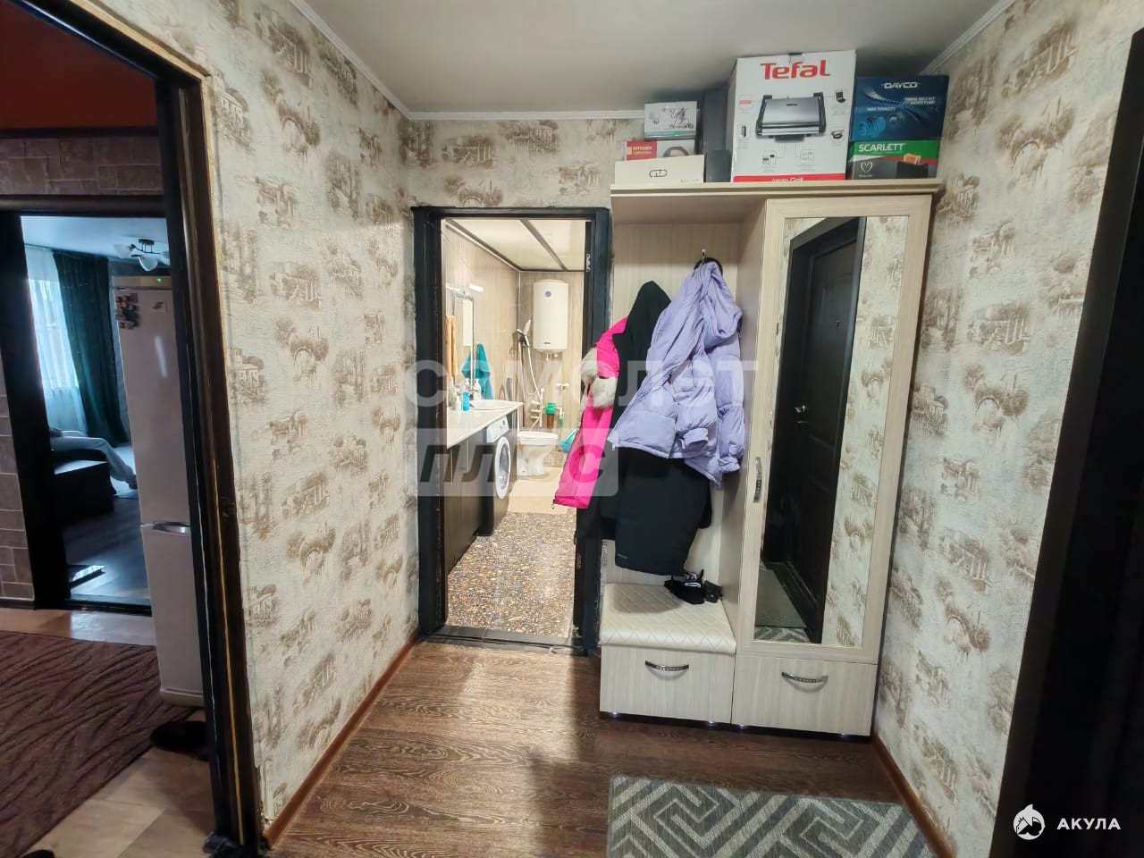 Коммуникации и оснащение:отопление: электрические алюминиевые радиаторы с ТЭНами (700 Вт каждый), без труб и котла;горячее водоснабжение: бойлер;климат‑контроль: инверторный кондиционер;безопасность: система видеонаблюдения;окна: пластиковые.