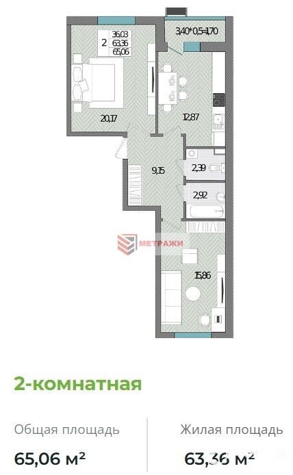 - 43.36 м²