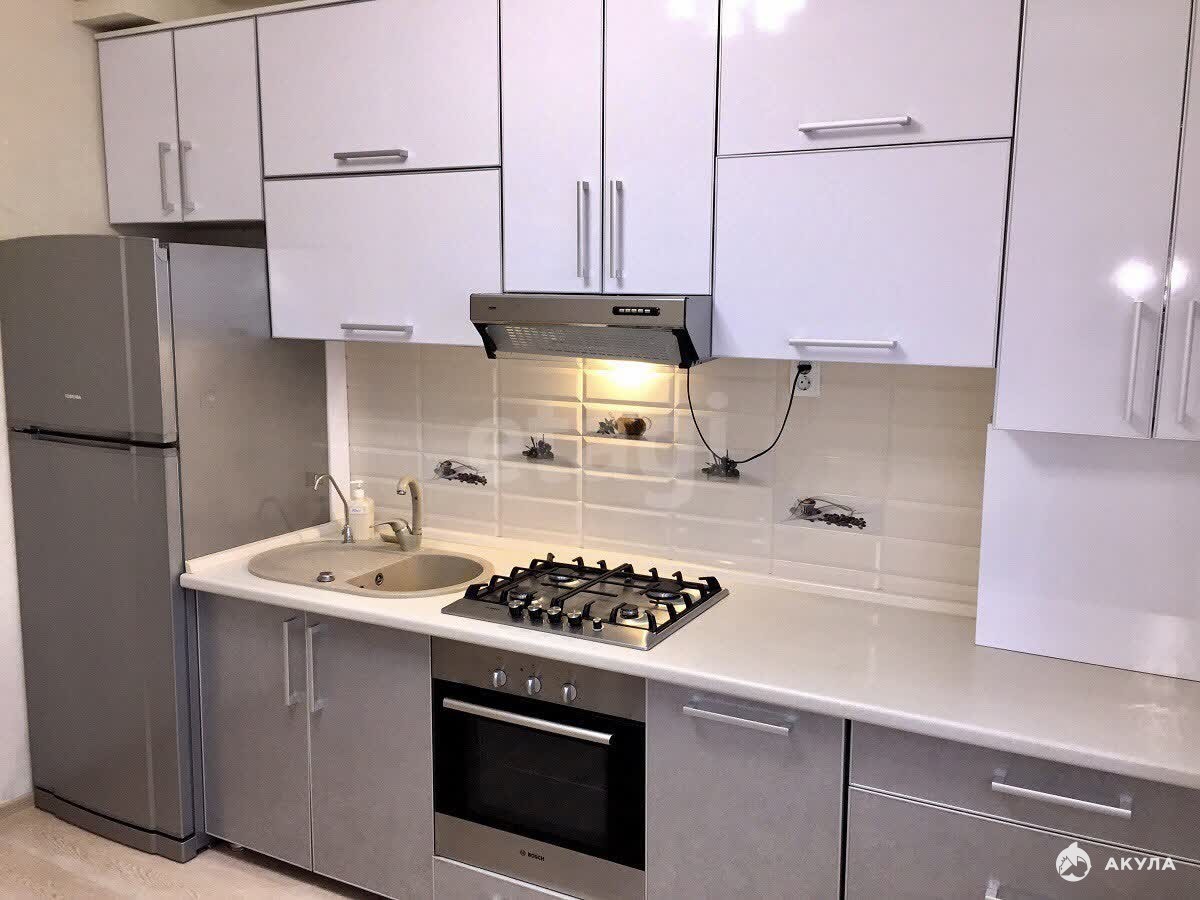 Кухня оснащена современным гарнитуром со встроенной техникой (газовая плита, духовой шкаф, посудомоечная машина), холодильником, сплит-системой и автономным газовым котлом для независимого отопления и горячего водоснабжения.