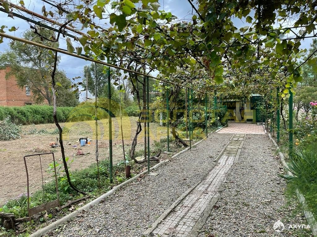 Участок большой, ухоженный. По всему периметру участка расположены всевозможные плодовые деревья( груша, яблоки, вишня, черешня, миндаль, грецкий орех и т.д.).
