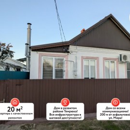 В продаже квартира на земле в развитом районе г. Темрюк! Свежий, качественный ремонт и все коммуникации! Квартира площадью 20 м² с качественным ремонтом построена из блока и облицована штукатуркой, крыша шифер. Санузел совмещенный. Участок площадью 3 сотки. Во дворе...
