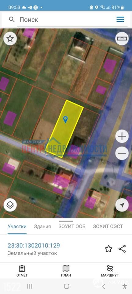 - Площадь участка